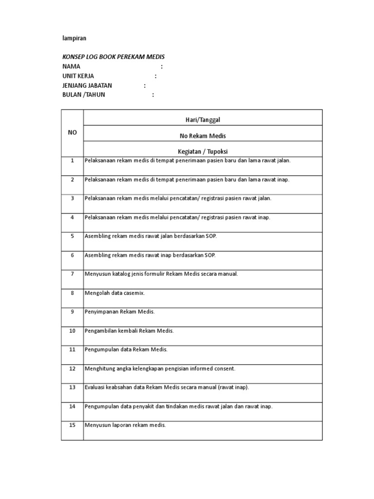 H Veranda Contoh Log Book Perekam Medis 2017 Pdf